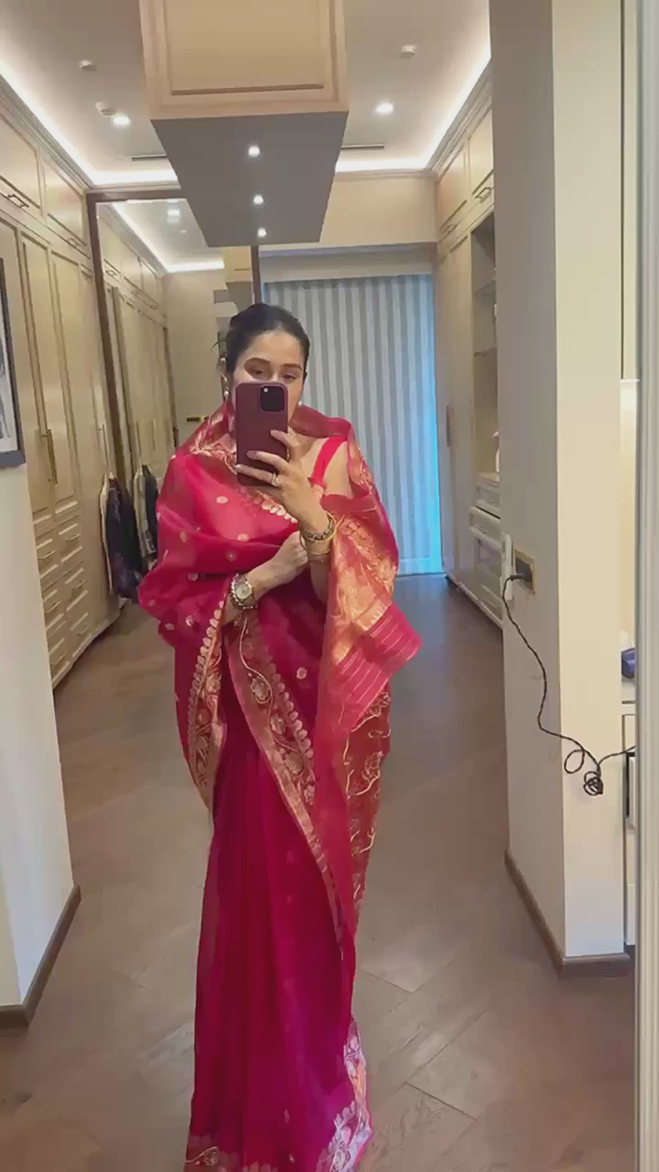Actor Sagarika Z Ghatge in our Dark Pink Satin-Crepe SareeActor Sagarika Z Ghatge in our Dark Pink Satin-Crepe Saree