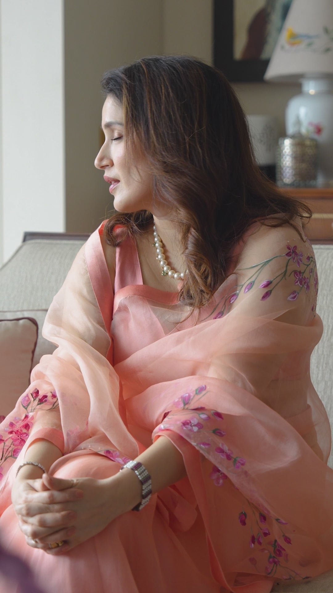 Actor Sagarika Z Ghatge in our Hand-Embroidered Silk-Organza Saree