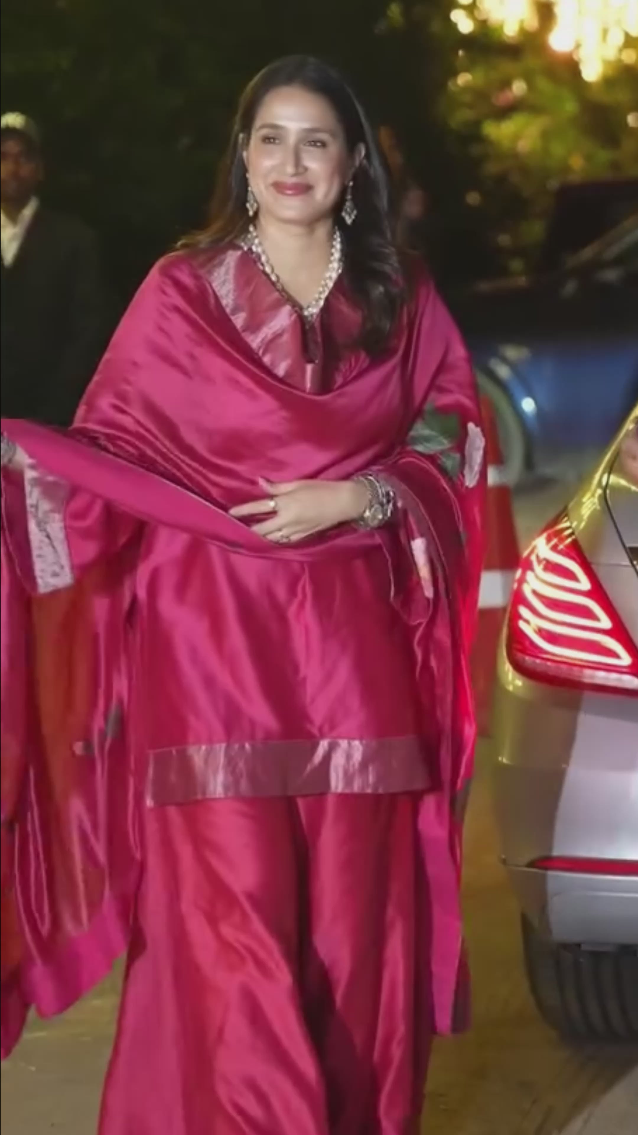 Actor Sagarika Z Ghatge in our Dark Pink Satin-Crepe Saree