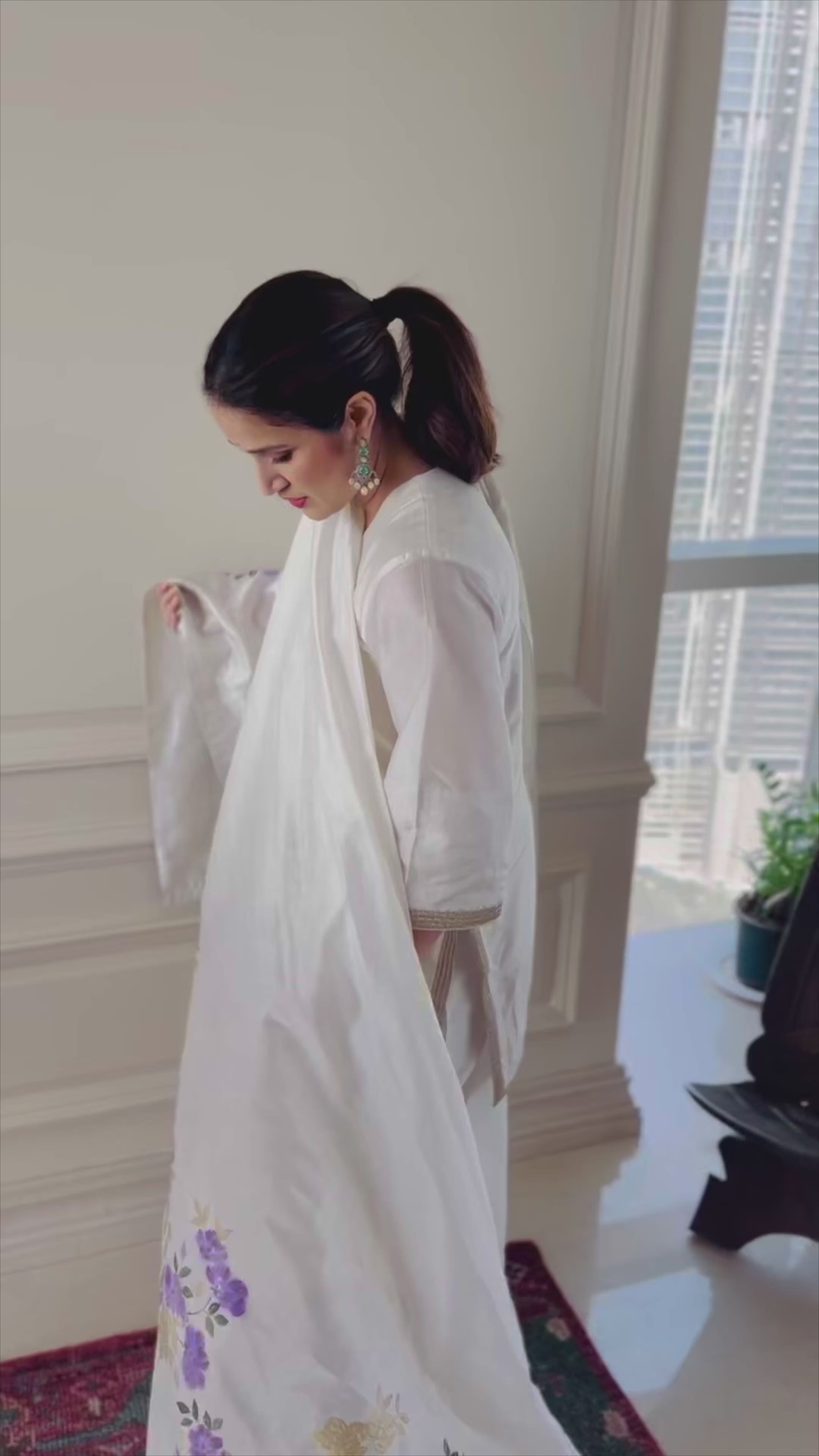 White Hand-Painted Chanderi Dupatta with Zardozi Borders.